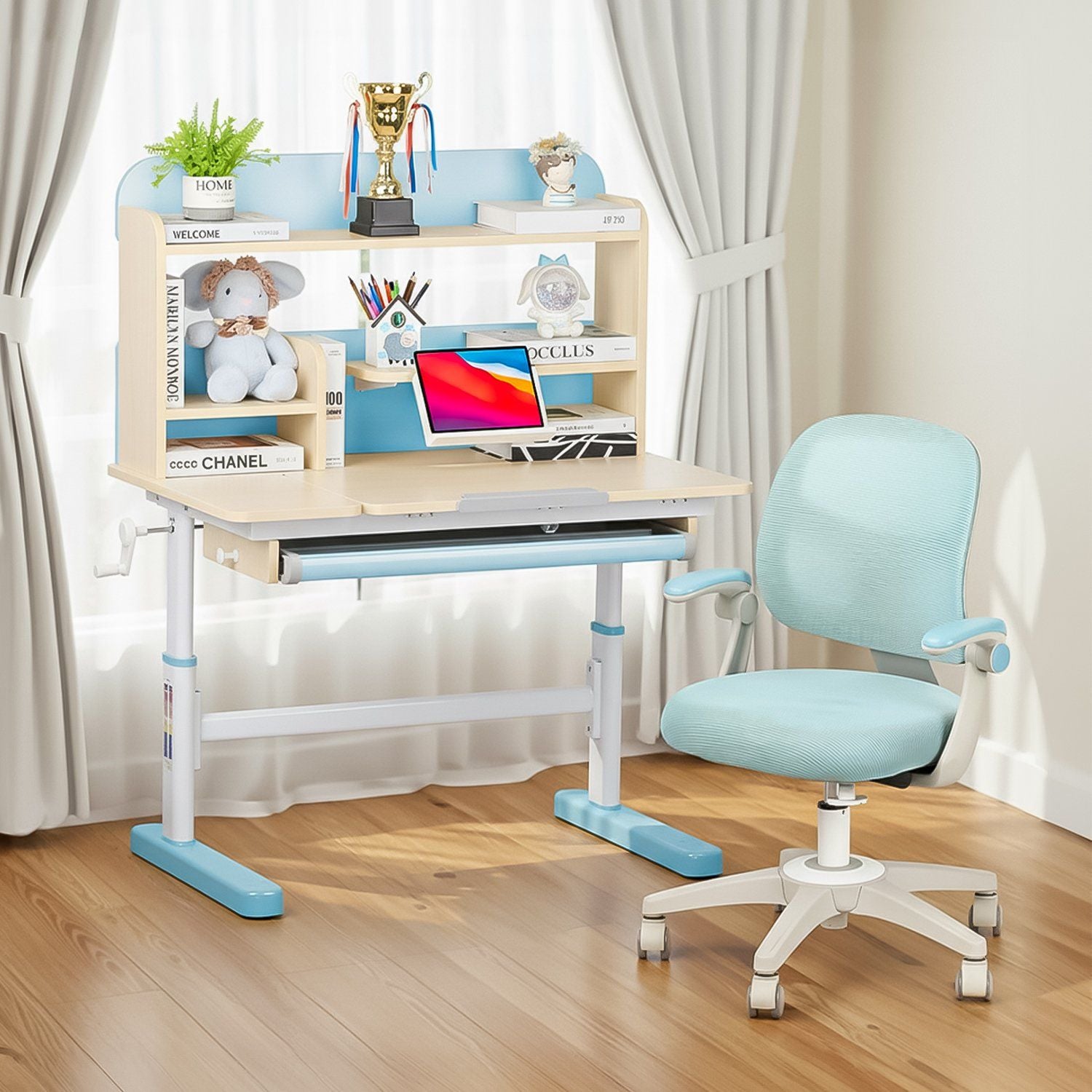 ĐIỀU CHỈNH ĐỘ CAO MẶT BÀN 49cm - 70cm phù hợp với con trong từng giai đoạn khôn lớn. Mặt bàn điều chỉnh độ cao cũng giúp bàn kết hợp linh hoạt với nhiều loại ghế ngồi hơn, từ ghế chống gù đến ghế có chiều cao cố định.