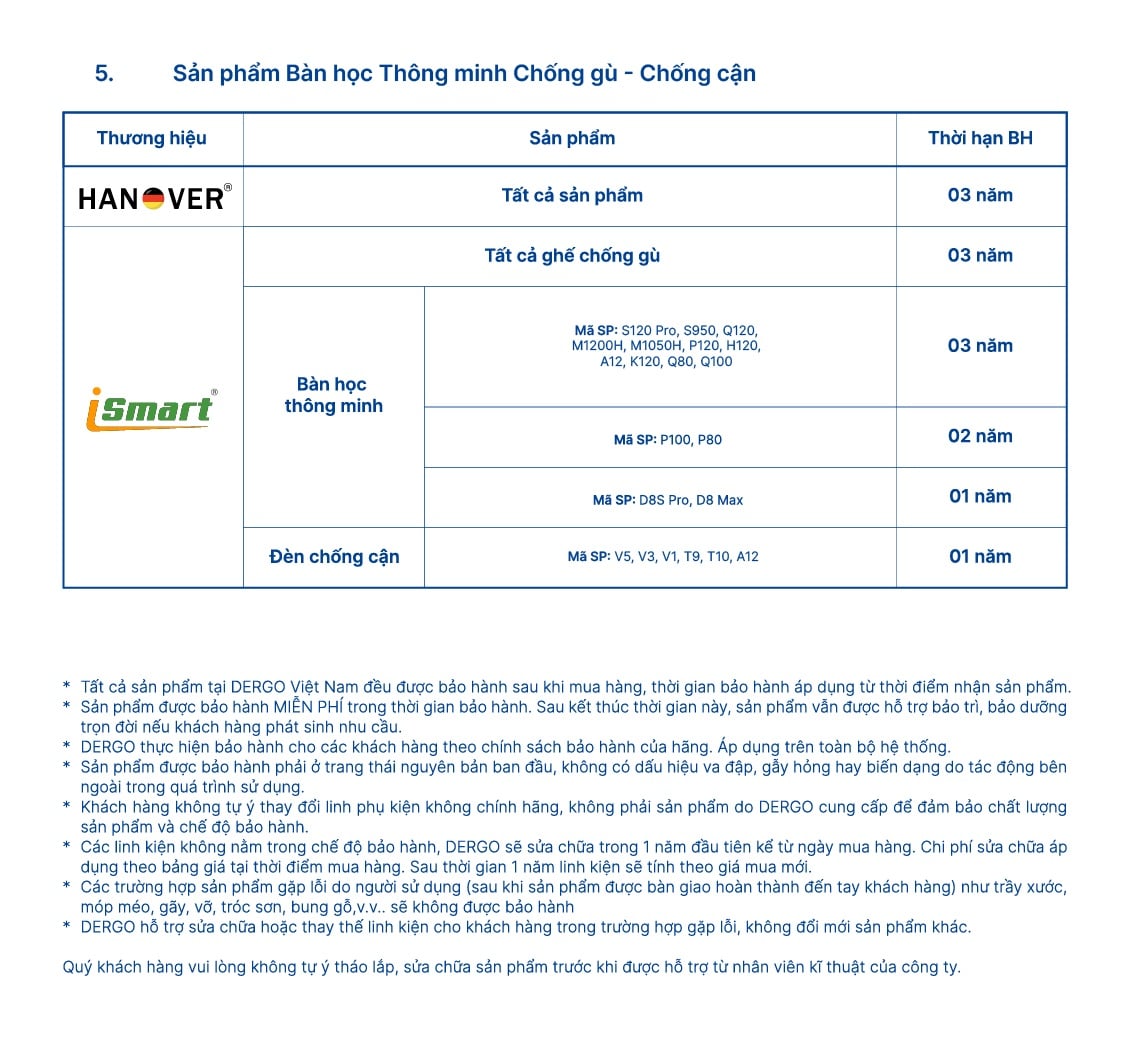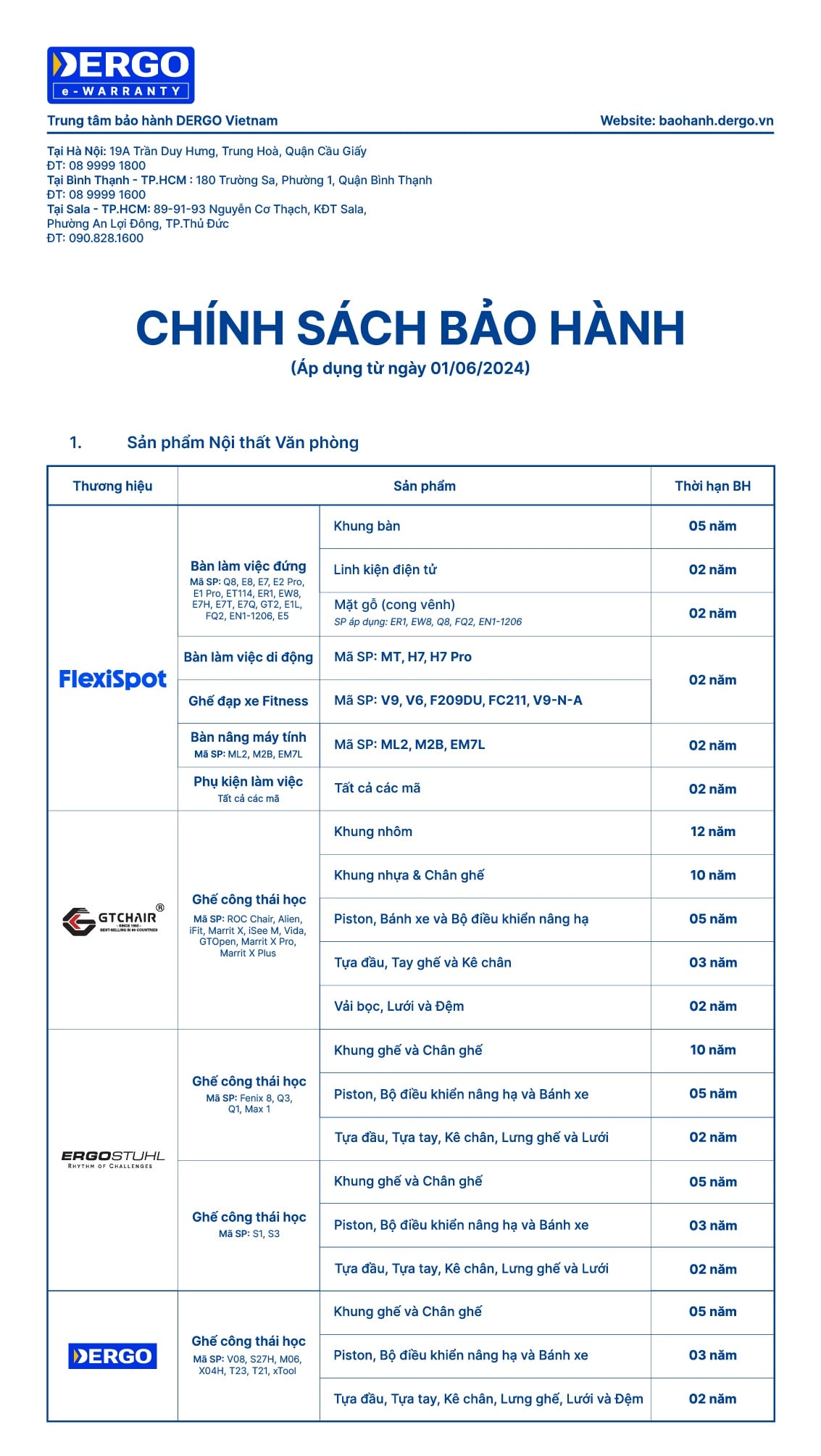 Chính sách bảo hành sản phẩm tại DERGO VIETNAM