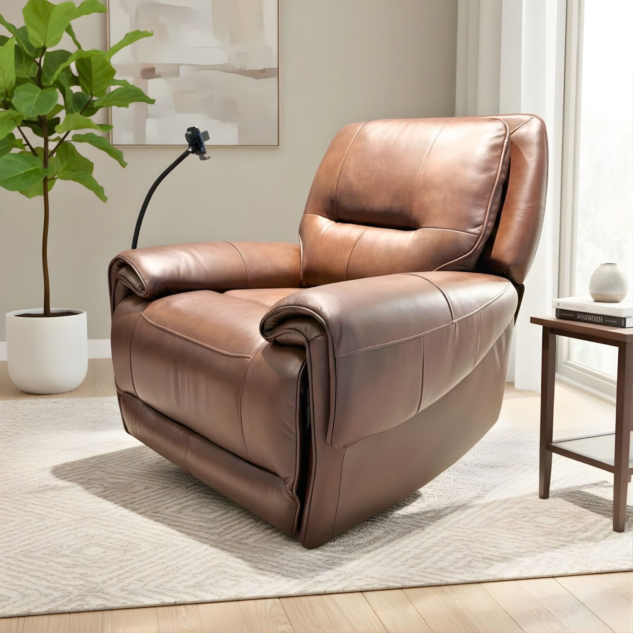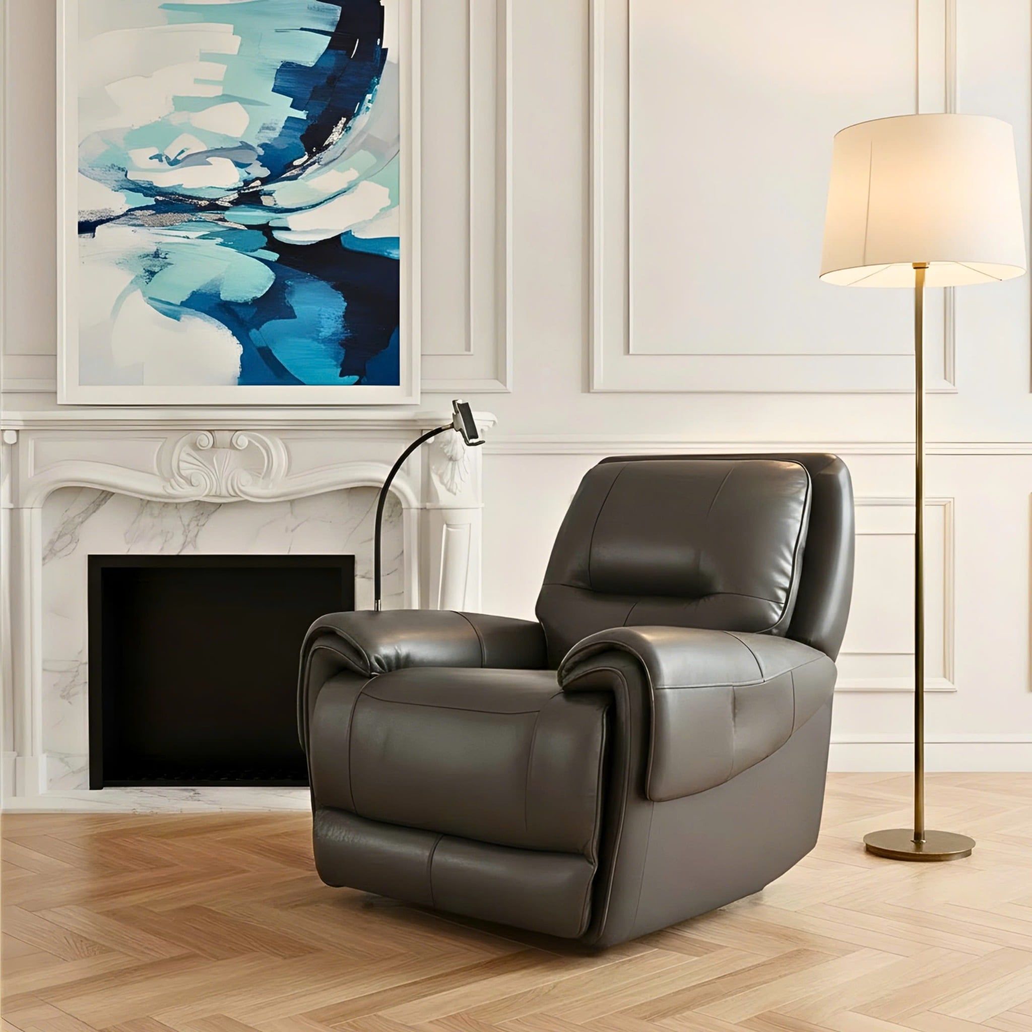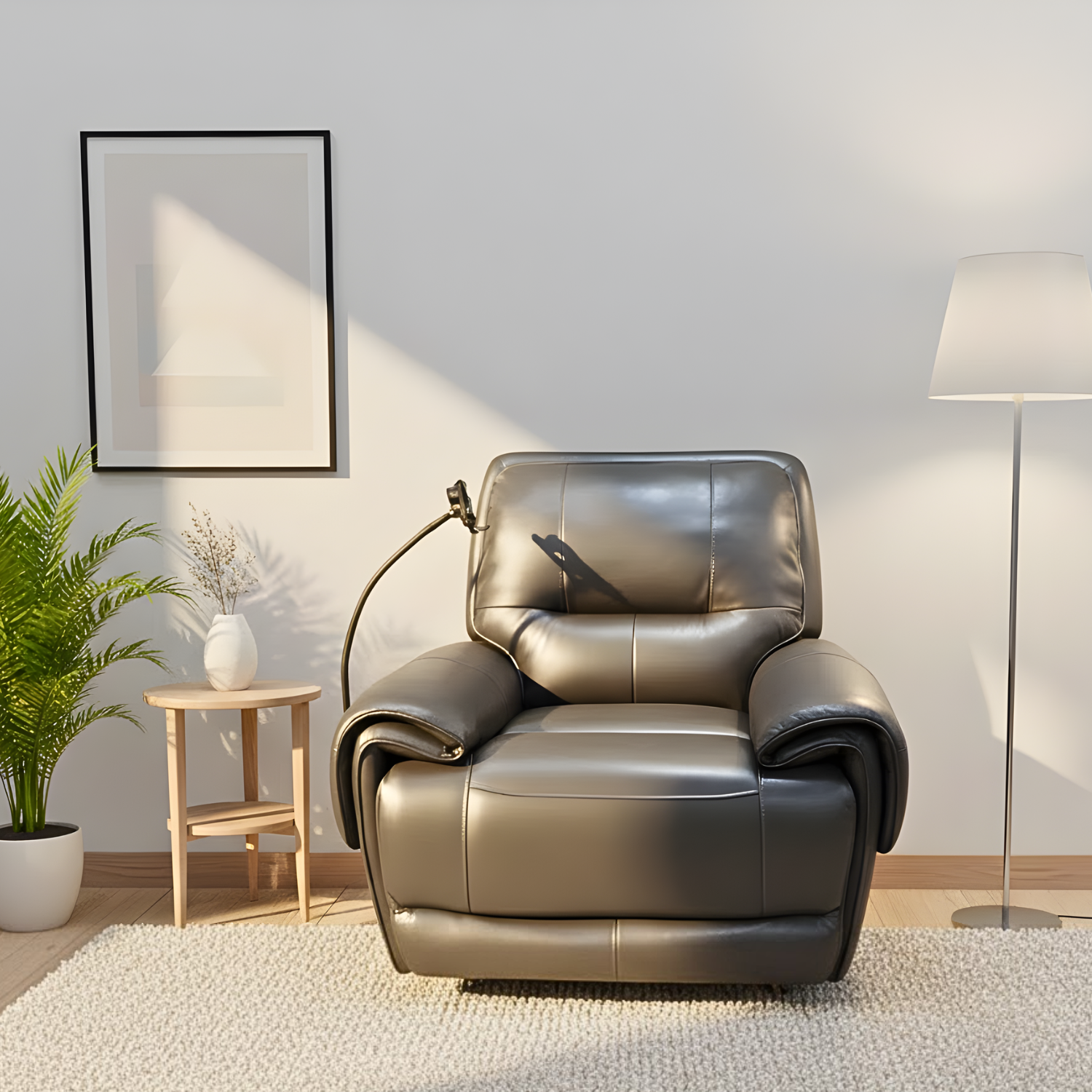 Một nâng cấp nhỏ nhưng thay đổi lớn cho trải nghiệm thư giãn. Giá đỡ kiêm sạc nhanh nằm ngay tay vịn sofa giúp bạn vừa ngả người nghỉ ngơi vừa giữ điện thoại đầy pin suốt ngày dài. Công nghệ sạc ổn định, an toàn; giá đỡ bo cong chắc chắn; bố trí chuẩn tầm mắt để xem nội dung thoải mái mà không cần cầm tay.
